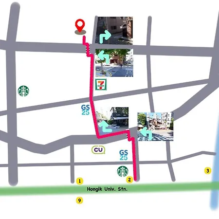 El hotel está en el centro de Seúl, al lado del Parque forestal de la Línea de Gyeongui. El Good Guesthouse #2 está situado a 25 minutos a pie del Museo de la Universidad Femenina Ewha. Este hotel también te lleva a la Puerta Namdaemun que está a 4 km. Hongik University, la estación de metro más cercana, está a 550 metros.